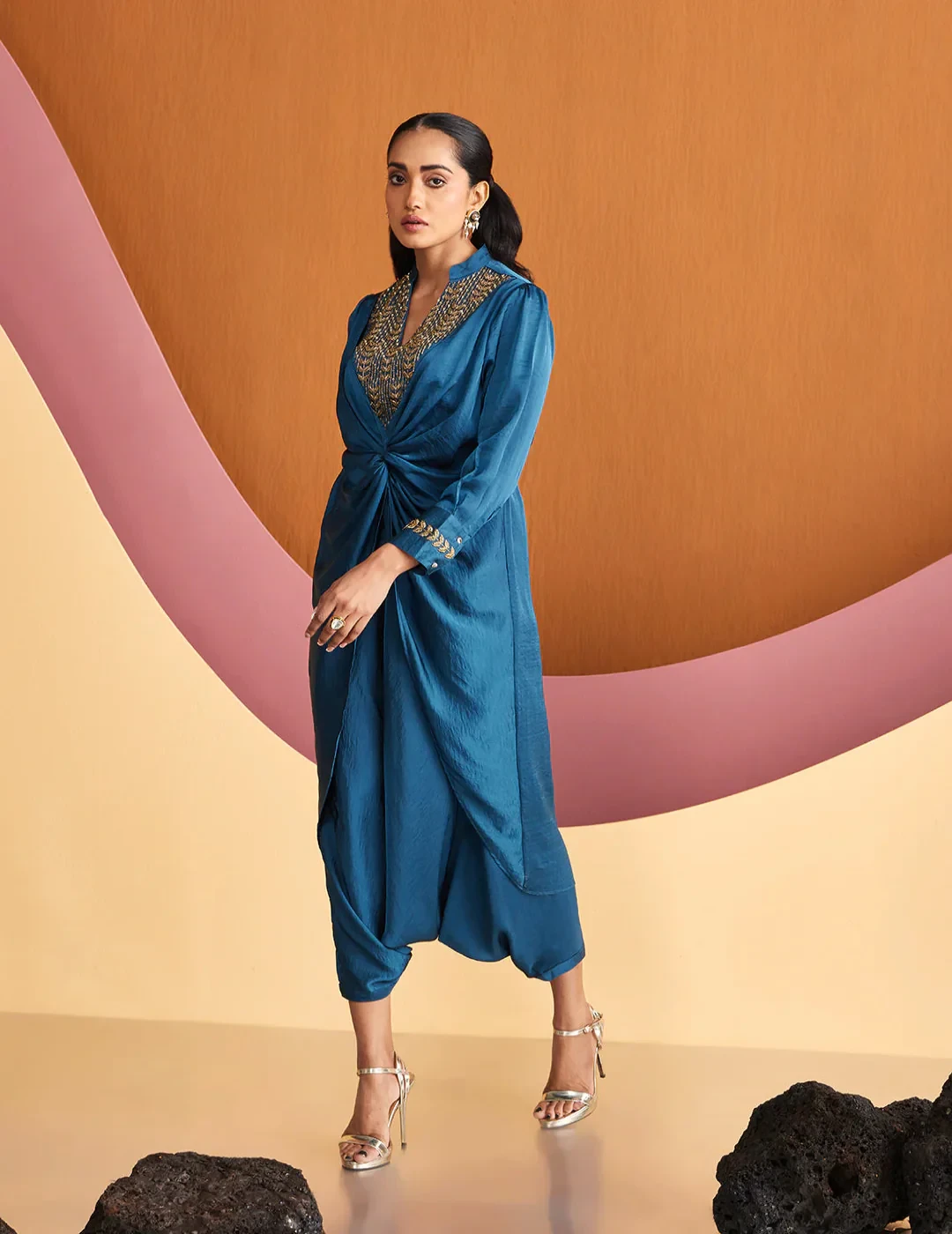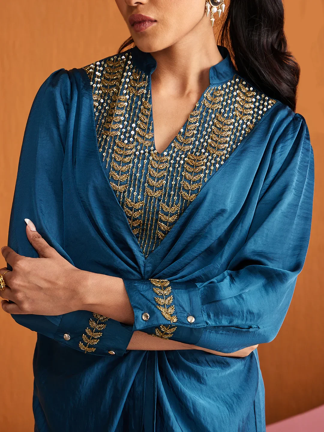 Draped in satin allure, embrace exquisite craftmanship in this stunning embroidered co-Ord set from the house of CHIQUE.