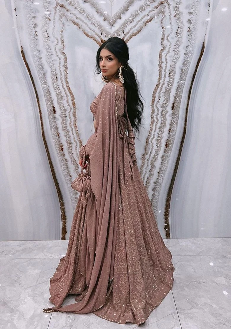 Pink Rosy Brown Sequin Embroidered Georgette Lehenga Set - XLH11975